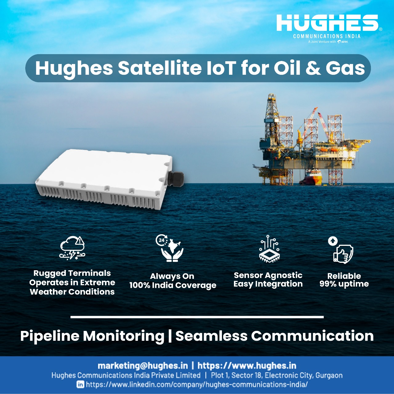 These industries power the nation—but operate in places where connectivity fails. At Hughes Communications India, we’re enabling them to thrive through Satellite IoT (Sat-IoT)—bringing automation, real-time data, and control to the remotest corners of India.